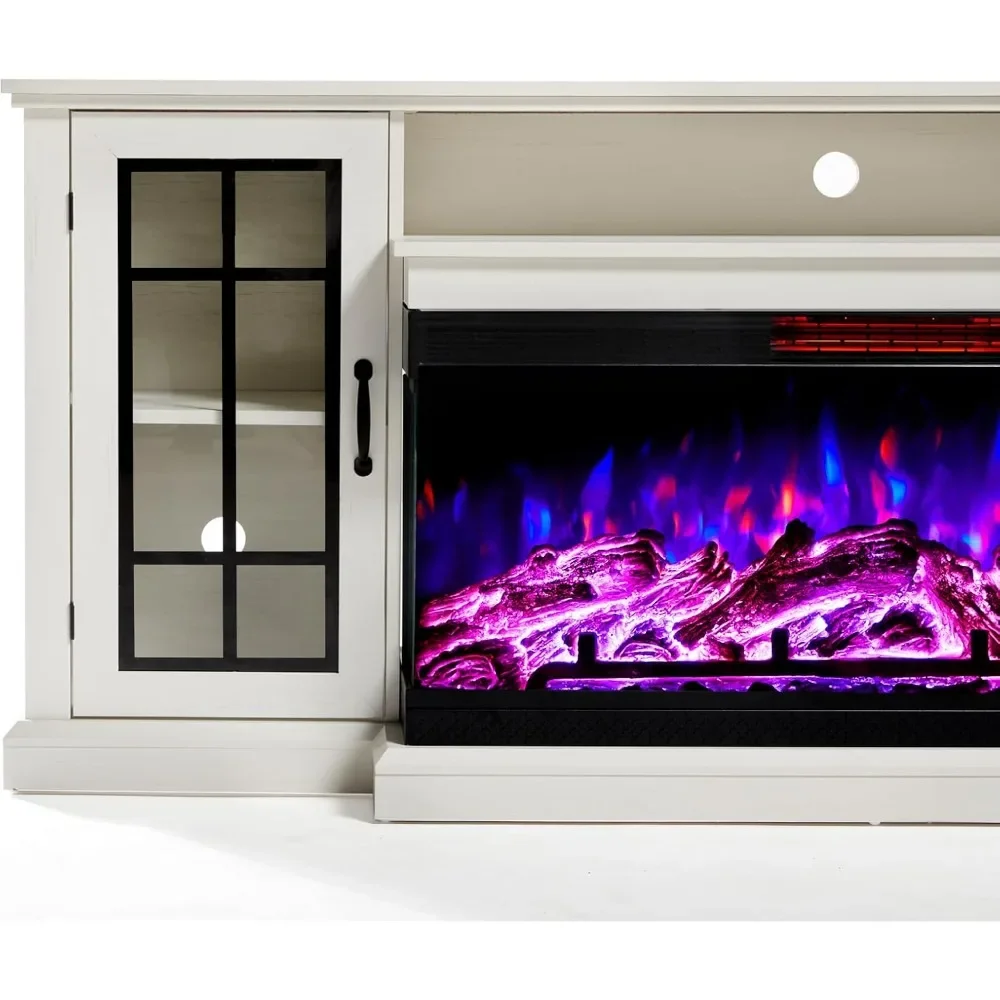 Fits TVs 85"+ - 75" TV Cabinet can accommodate TVs up to 85", including a 40" electric fireplace. TV Stand Dimensions: 75 W x 18.9 D x 31H in; Fireplace Dimensions: 40 W x 11 D x 18.3 H in.