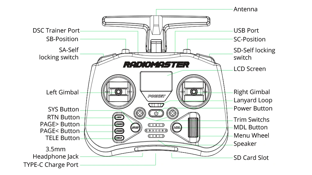 Module bay: Nano size (Compatible with RadioMaster Nano-size modules, TBS Nano Crossfire / Nano Tracer )